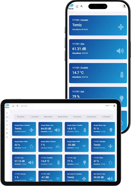 Cihazınızı sürekli izleyin ve veri odaklı çözümlerle her zaman bir adım önde olun. Sizin için özel olarak tasarlanmış sensörlerle, her ortamda güvenliği ve verimliliği artırın