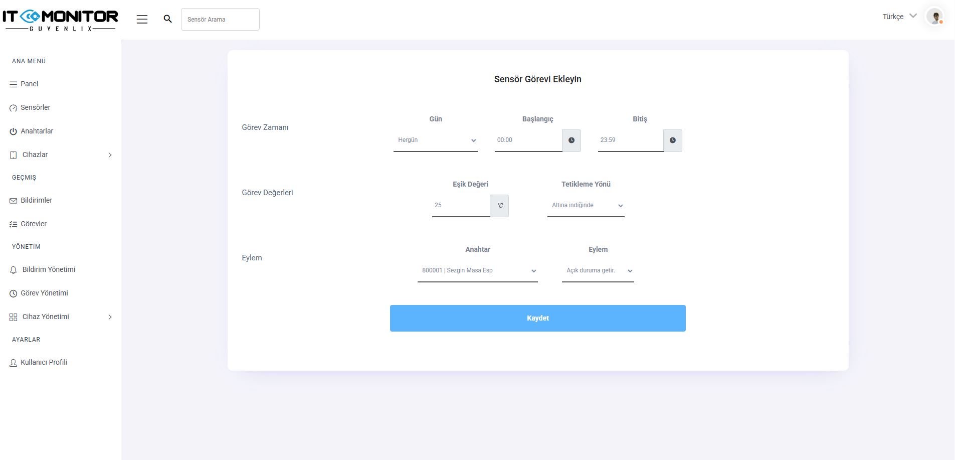 ITMonitor Görev Sistemi, hem enerji tasarrufu sağlar hem de çevre koşullarına göre hızlı ve akıllı tepkiler üretir. Hiçbir ek yazılım gerektirmez, tamamen cihaz içinde tanımlanabilir ve uzaktan yönetilebilir.