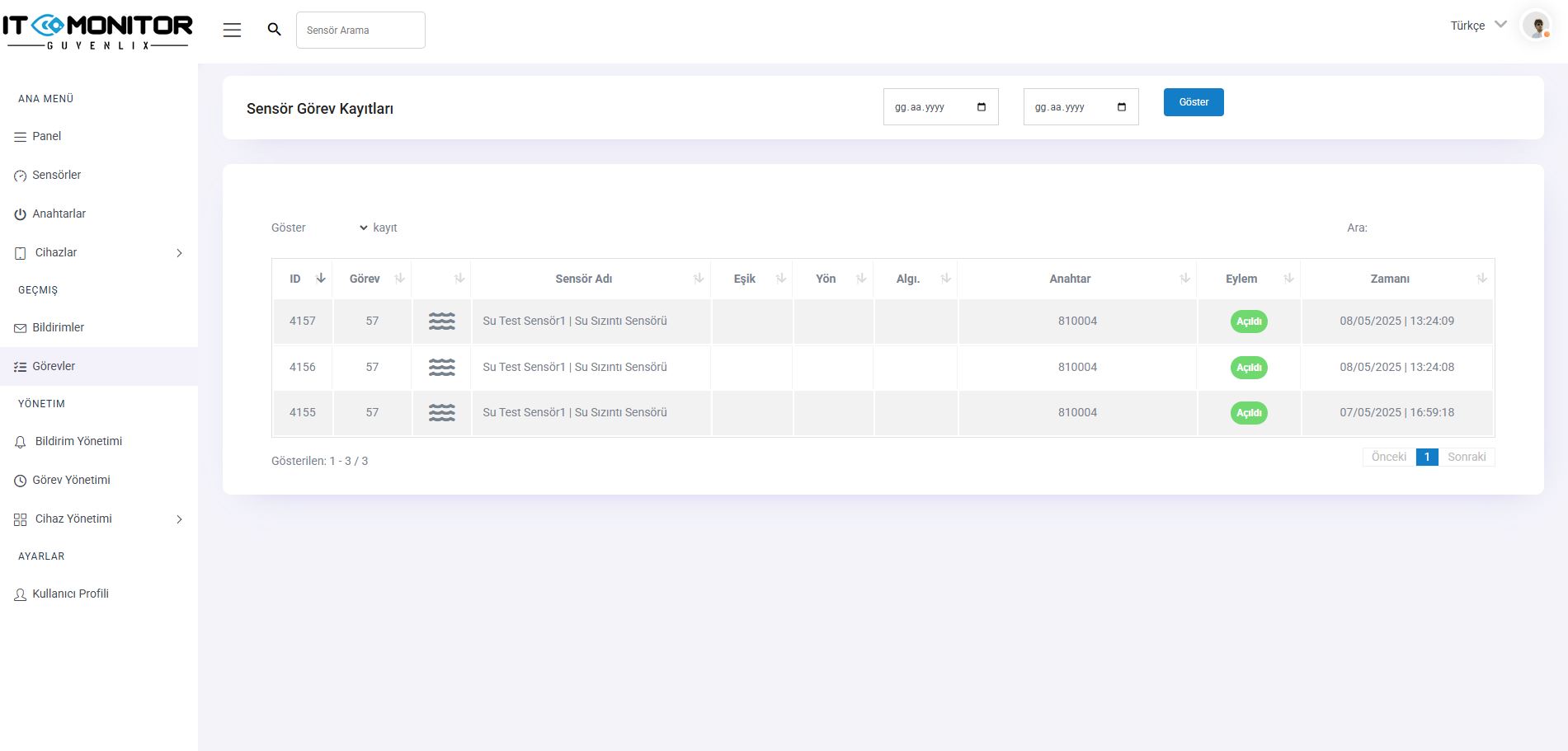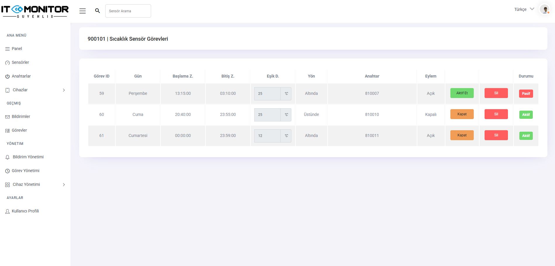 Tüm görevler, ITMonitor sistem arayüzü üzerinden gerçek zamanlı olarak takip edilebilir. Görevin başarıyla çalıştığı, prizin durumu değiştirildiği anda arayüzde görüntülenir ve gerektiğinde manuel müdahale de yapılabilir.